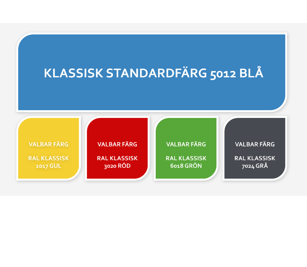 Omnigyms utrustning finns i fem standardfärger men kan beställas i vilken färg du än önskar.